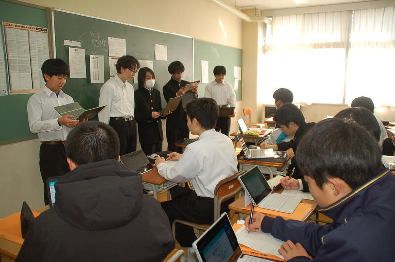 2月6日(金)の6限に、渋高の「総合的な探究の時間」であるi-Programの成果発表会が1学年で行われました。今年度は地域探究を題材に、探究学習における考え方や手法を学んできました。3学期には5名程度の小グループを編成し、学んだ内容を生かして自分たちなりの問いや課題を設定して、どのようにその課題を解決できるか検討した成果を互いに発表し合いました。